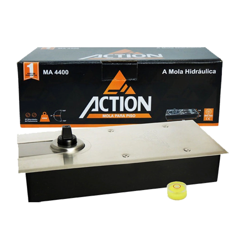 A mola hidráulica mais econômica do mercado! Com eixo santa marina blindado, suporta até 85 kg com abertura máxima de 105º com ângulo de parada a 90º. Esse modelo possui duas velocidades de fechamento ajustável por duas válvulas independentes em tampa de aço escovado.